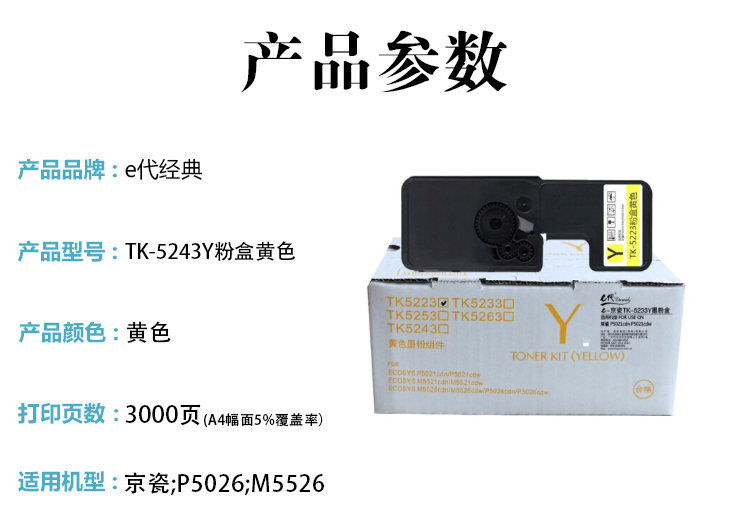 e代经典TK-5243Y京瓷粉盒(不含鼓组件)黄(单位:支)