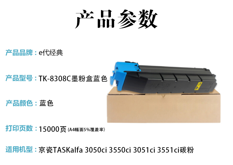 e代经典TK-8308C京瓷粉盒(不含鼓组件)蓝(单位:支)