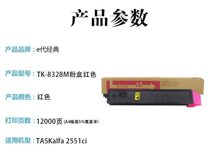 e代经典TK-8328M京瓷粉盒(不含鼓组件)红(单位:支) (适用:TASKalfa 2551ci)