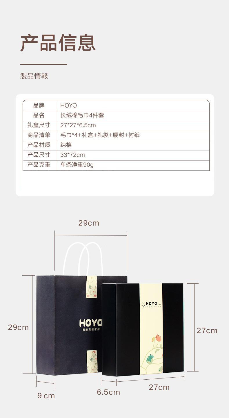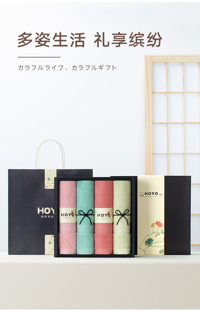 HOYO/4505臻品长绒棉毛巾4件套礼盒-彩色系33*72cm(单位:盒)