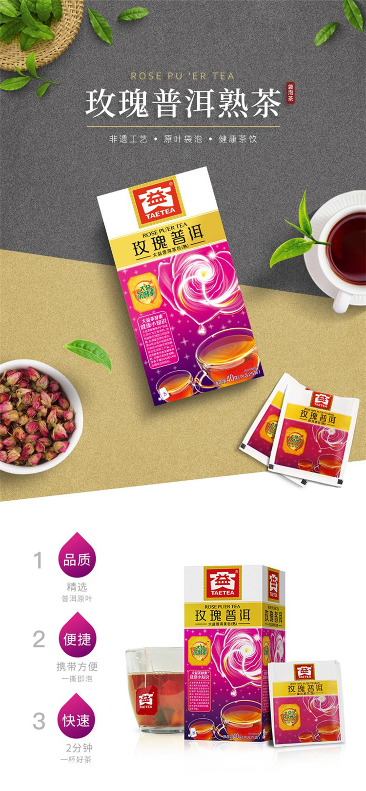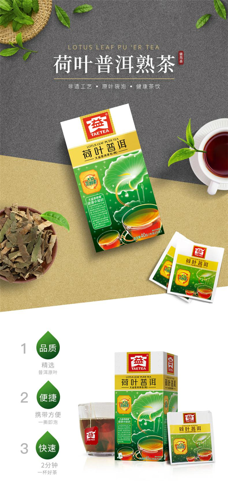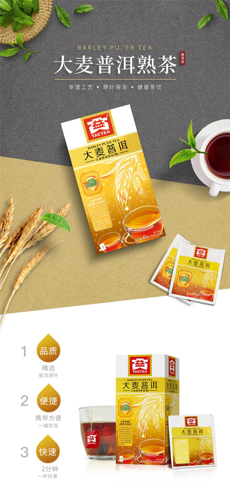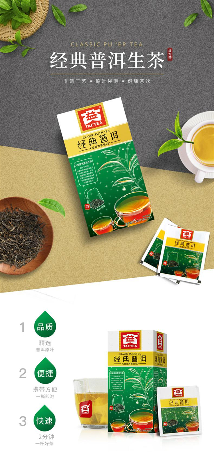大益普洱茶熟茶 便携系列独立包装袋泡茶 新版 经典熟袋泡茶45g(单位:盒)