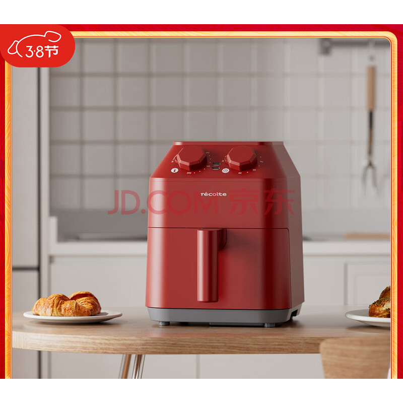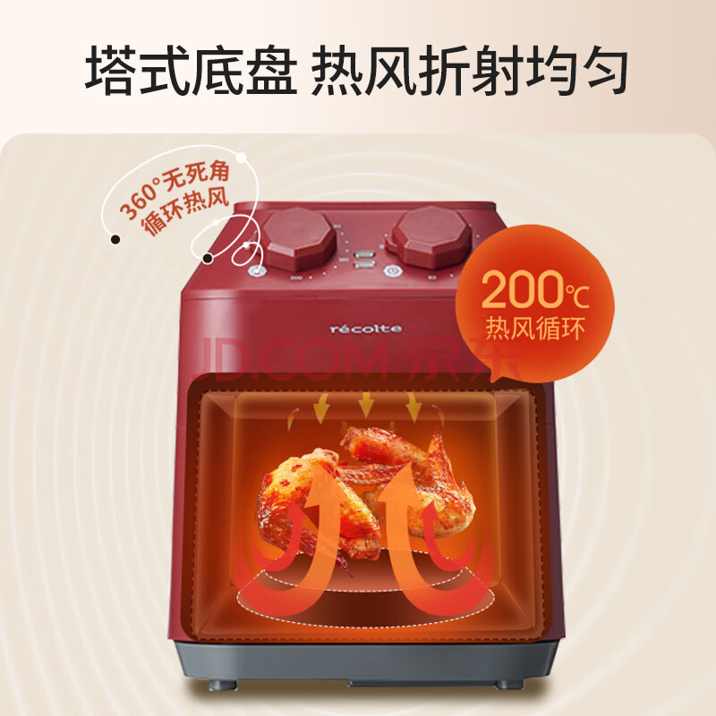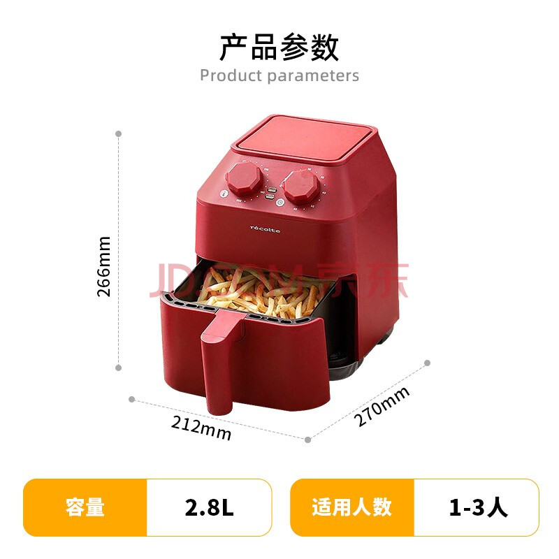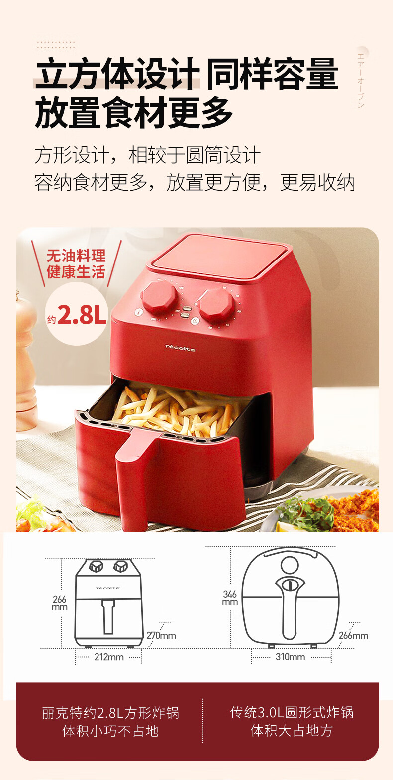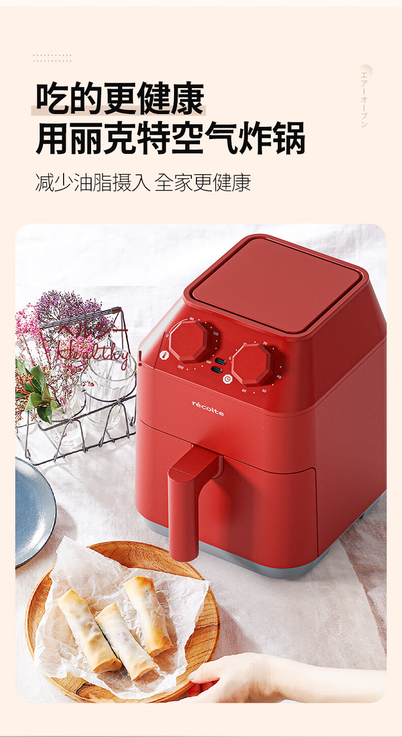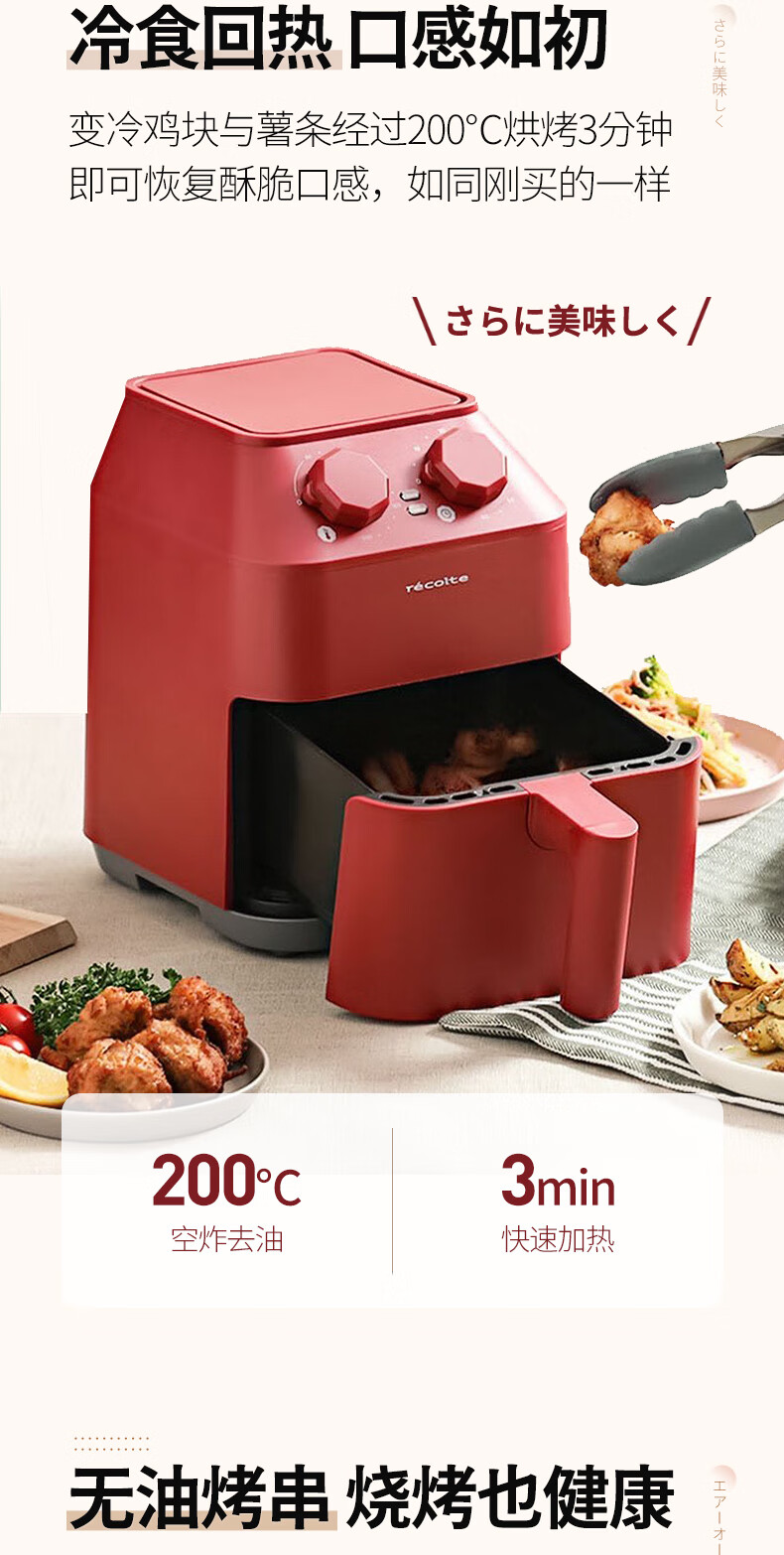 丽克特(recolte) 空气炸锅家用电炸锅智能迷你小型多功能烘烤小家电低油脂空气炸锅免翻面烤箱薯条机 复古红 2.8L