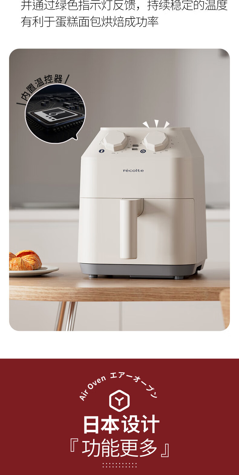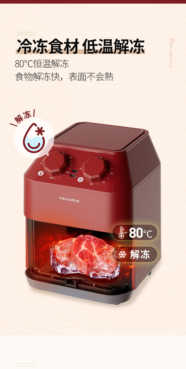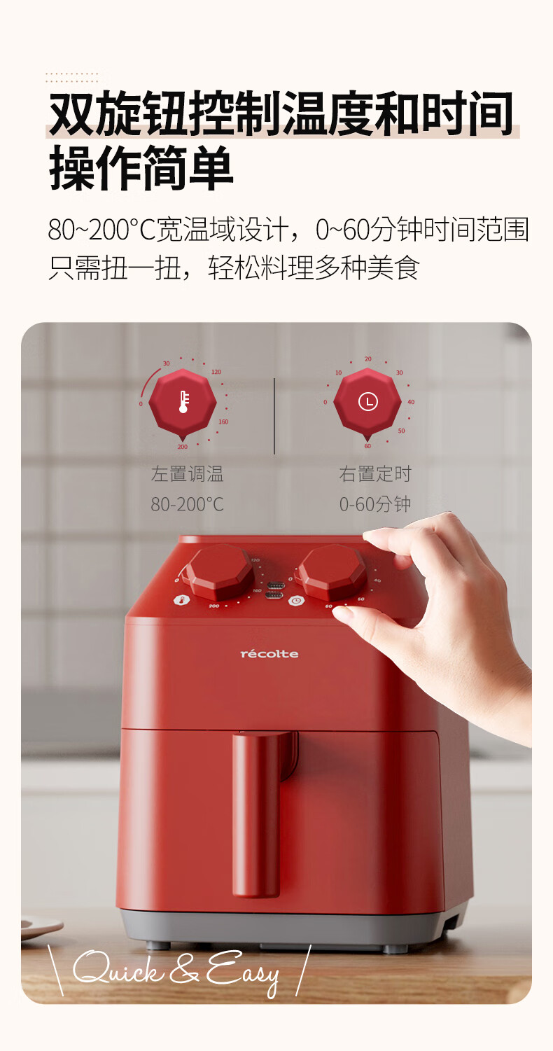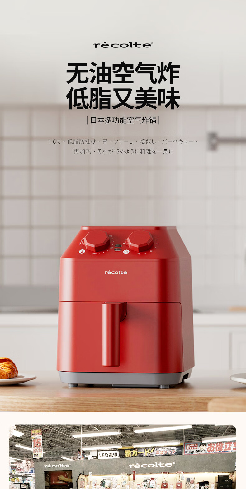 丽克特(recolte) 空气炸锅家用电炸锅智能迷你小型多功能烘烤小家电低油脂空气炸锅免翻面烤箱薯条机 复古红 2.8L