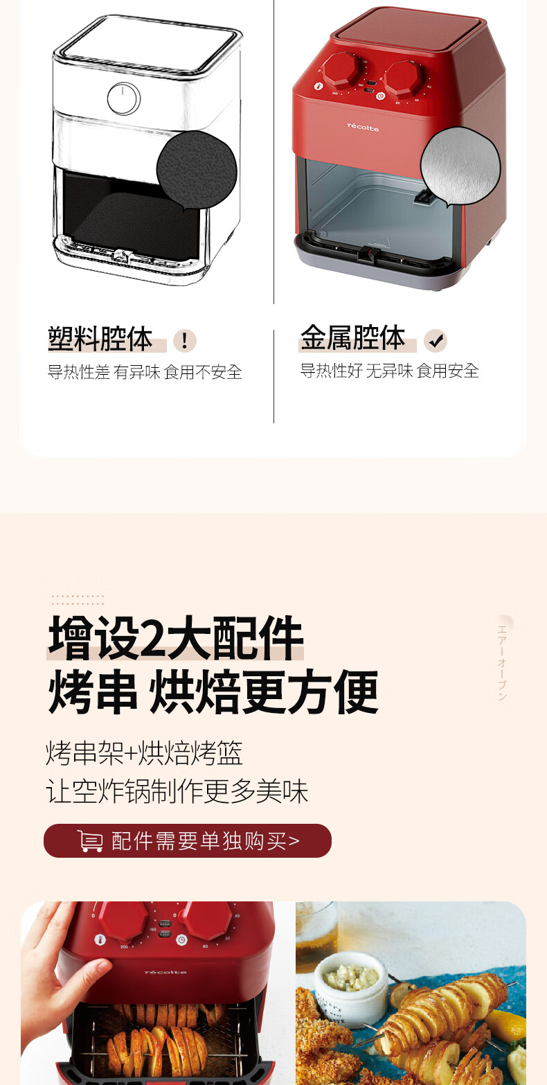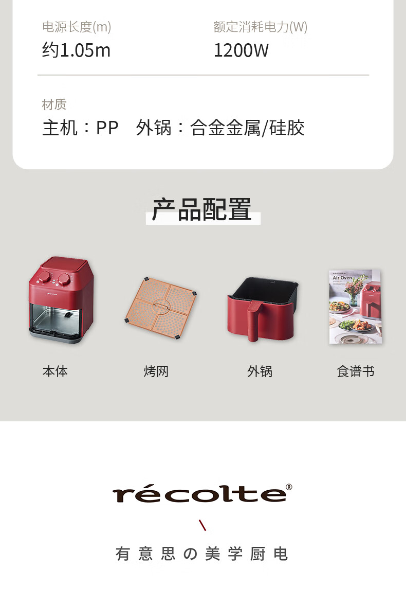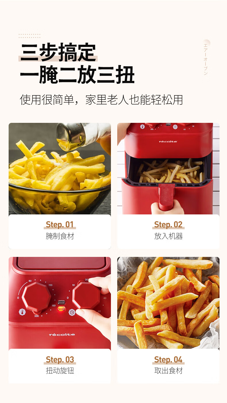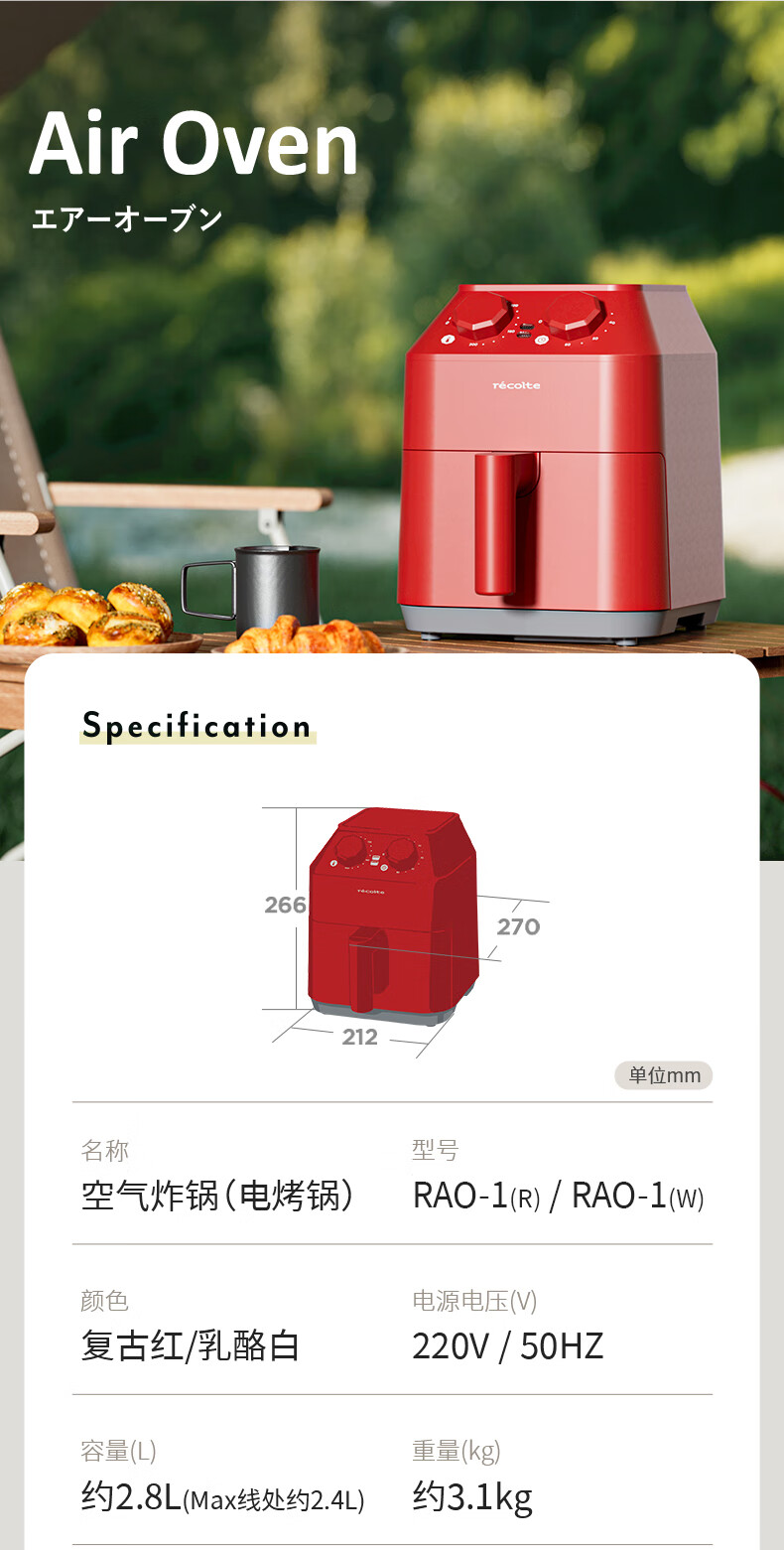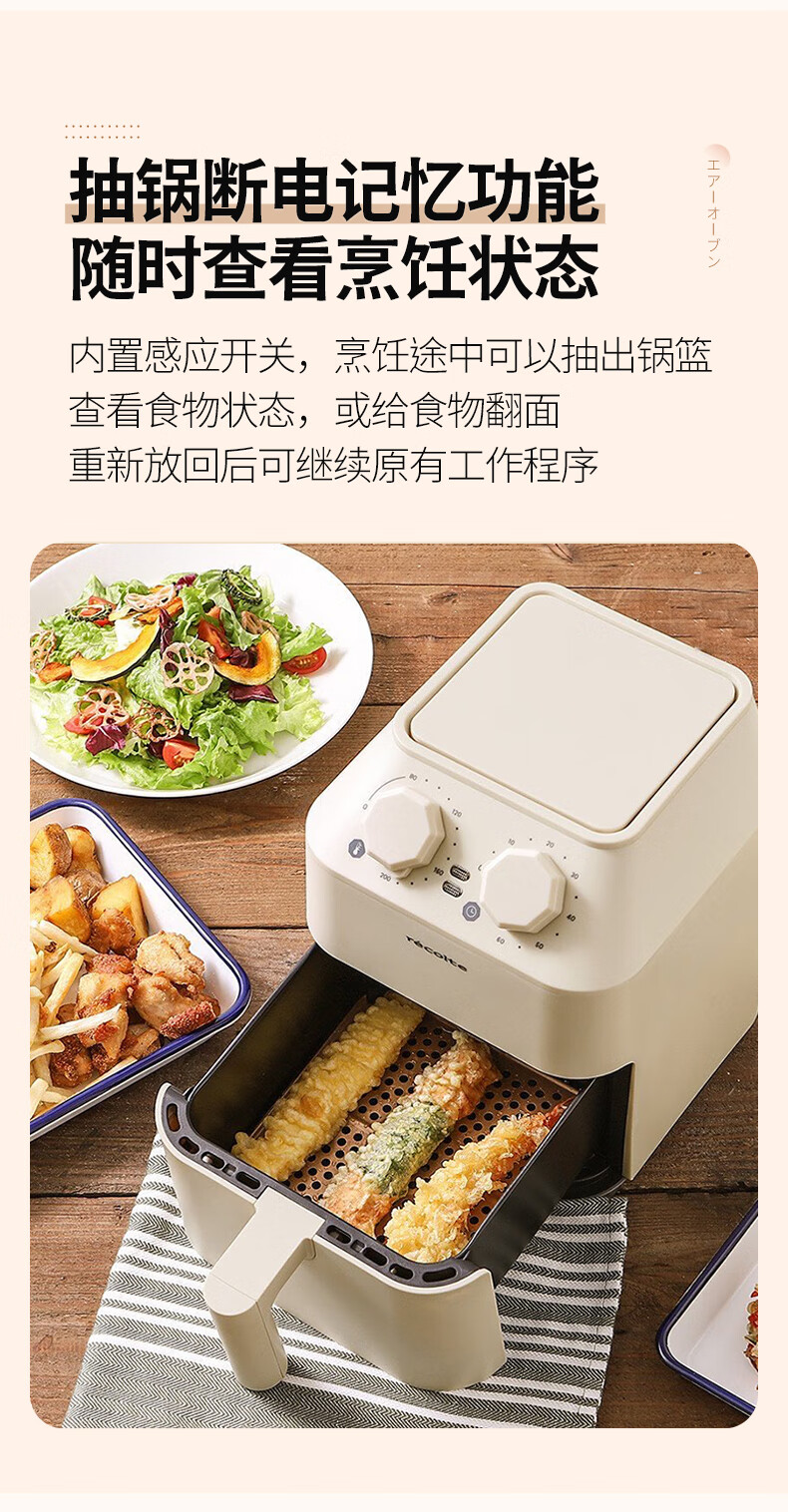 丽克特(recolte) 空气炸锅家用电炸锅智能迷你小型多功能烘烤小家电低油脂空气炸锅免翻面烤箱薯条机 复古红 2.8L