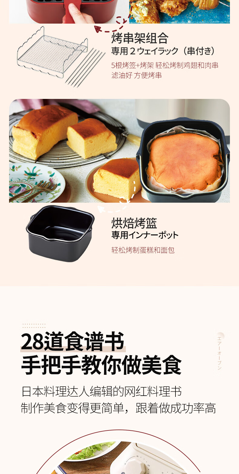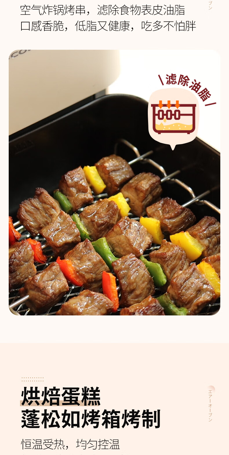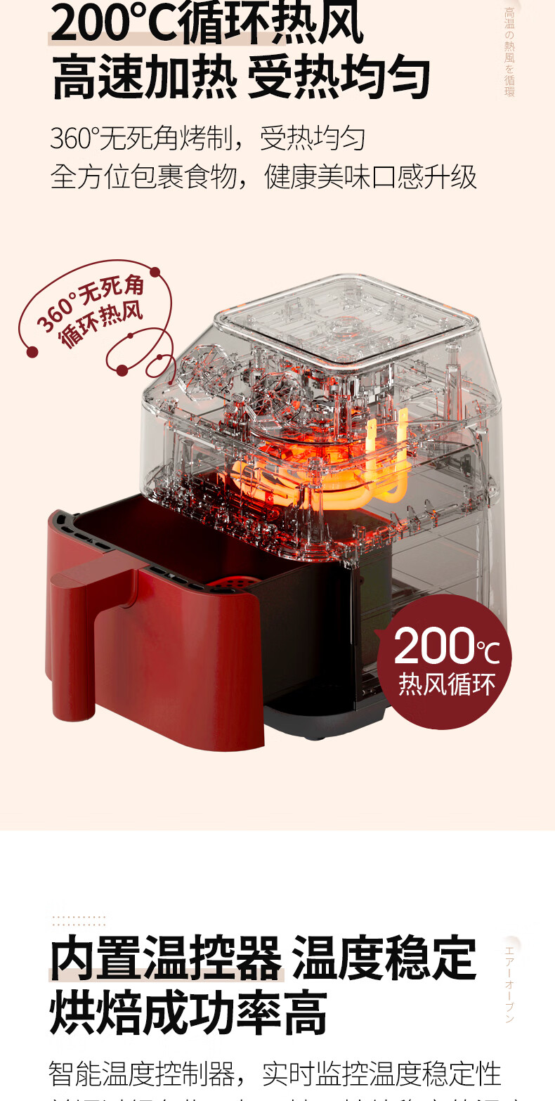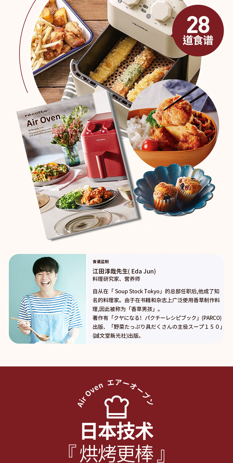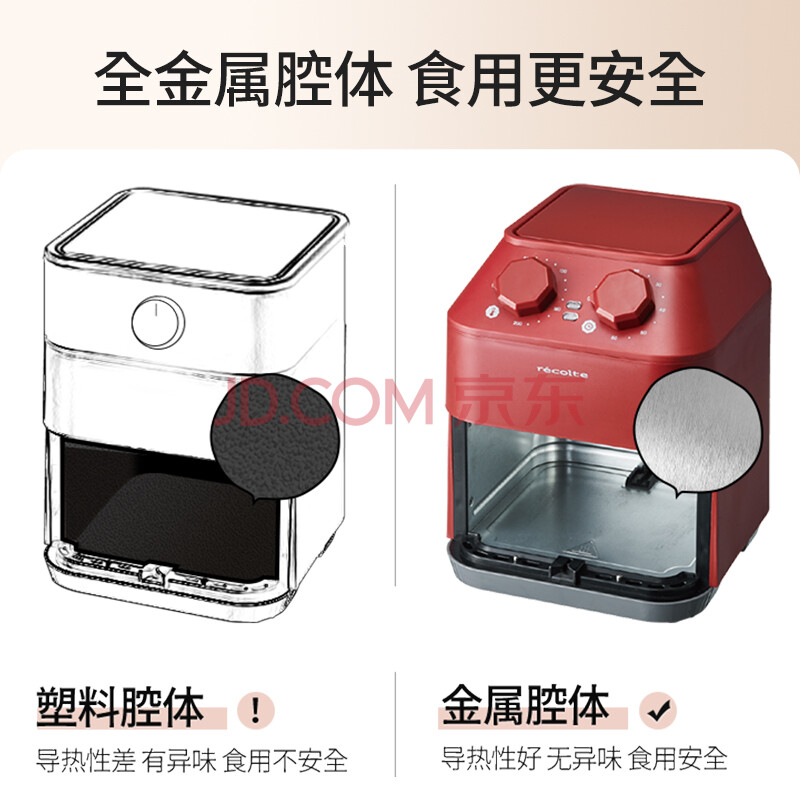 丽克特(recolte) 空气炸锅家用电炸锅智能迷你小型多功能烘烤小家电低油脂空气炸锅免翻面烤箱薯条机 复古红 2.8L