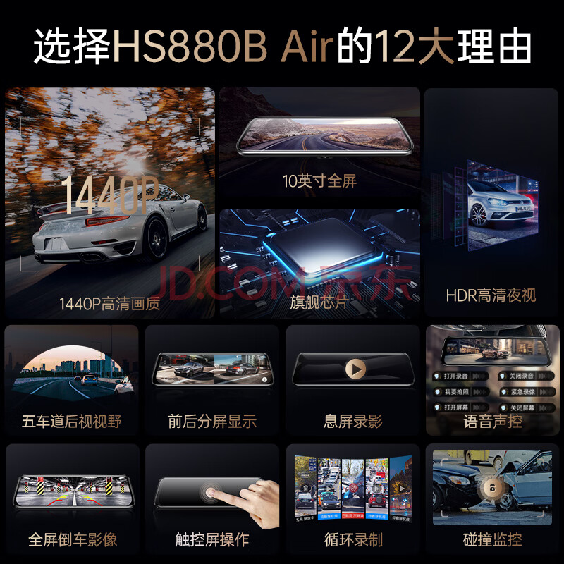 LNDU凌度行车记录仪前后双录HS880BAir高清1440P+2K流媒体后视镜倒车