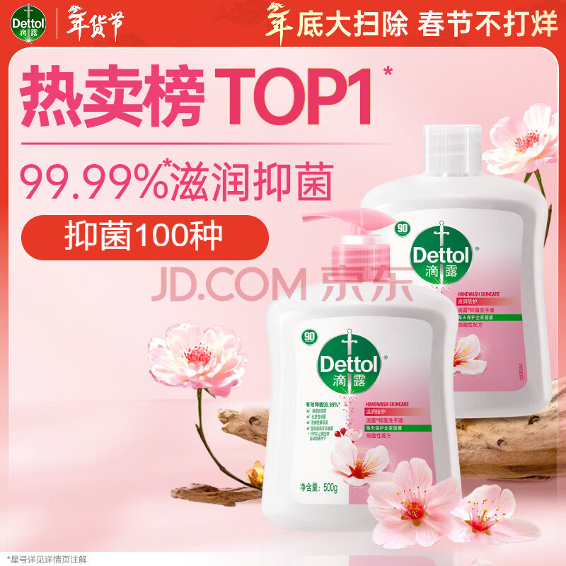 滴露(Dettol)洗手液抑菌杀菌消毒滋润500g+500g 补充装儿童家庭护手替换