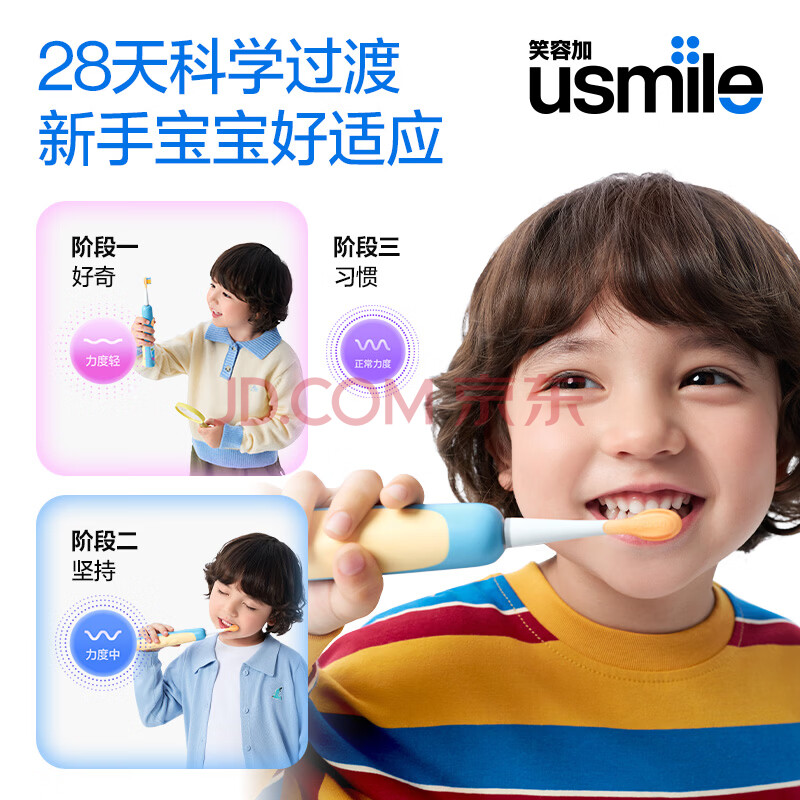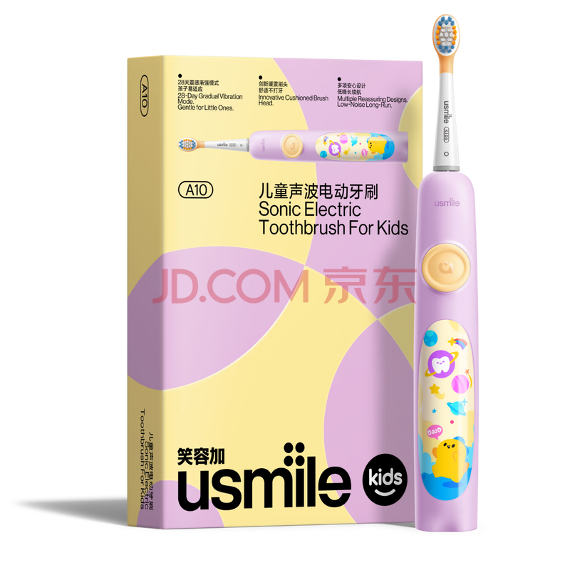 usmile笑容加儿童电动牙刷 声波震动 120天续航 A10梦幻紫 3-6-12岁 生日礼物 儿童礼物 新年礼物