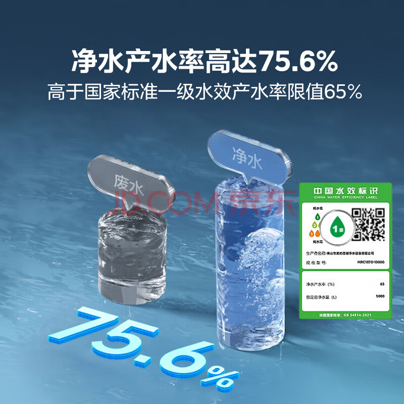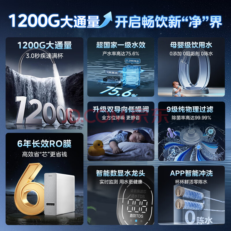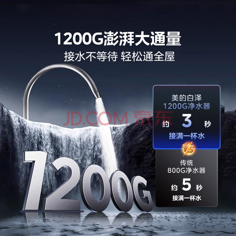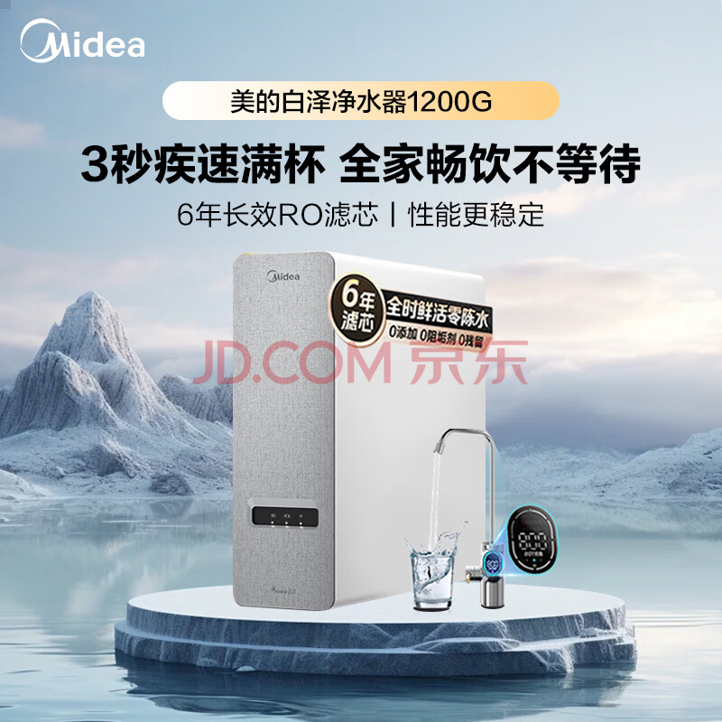 美的(Midea)家用净水器白泽1200G 鲜活零陈水 厨下反渗透直饮一体机净饮机