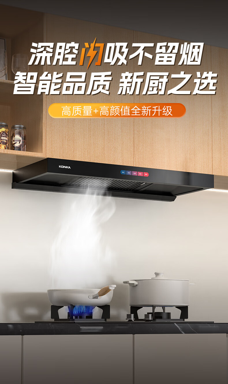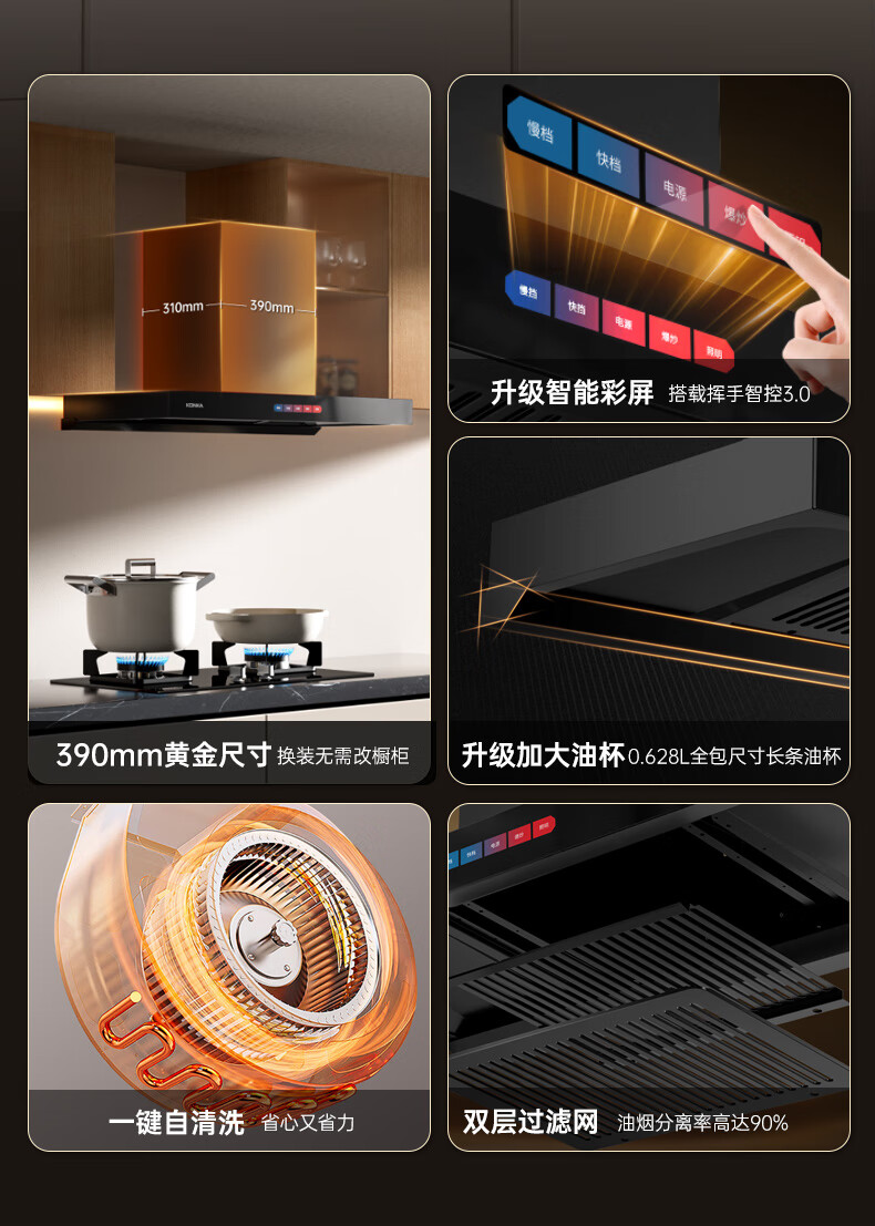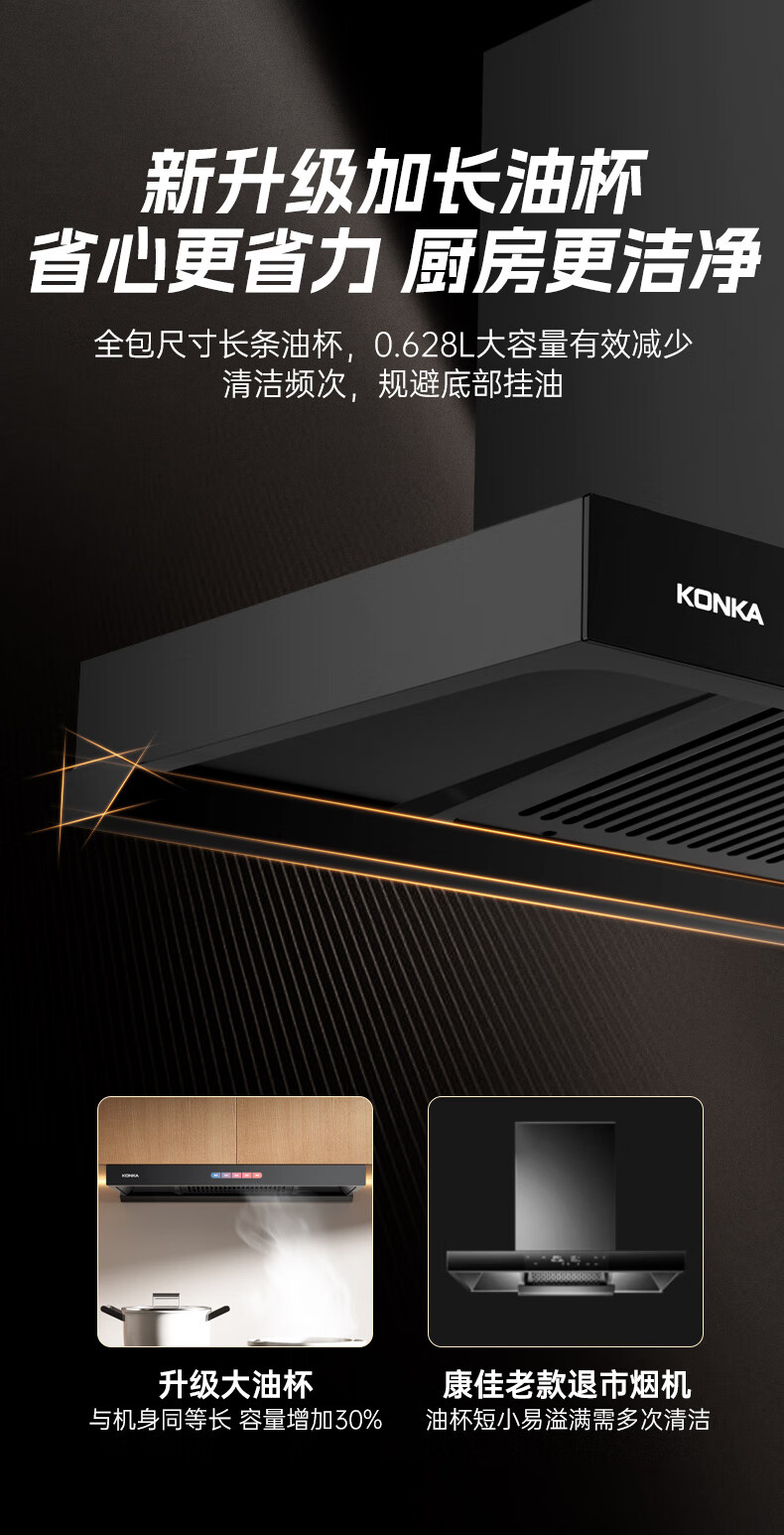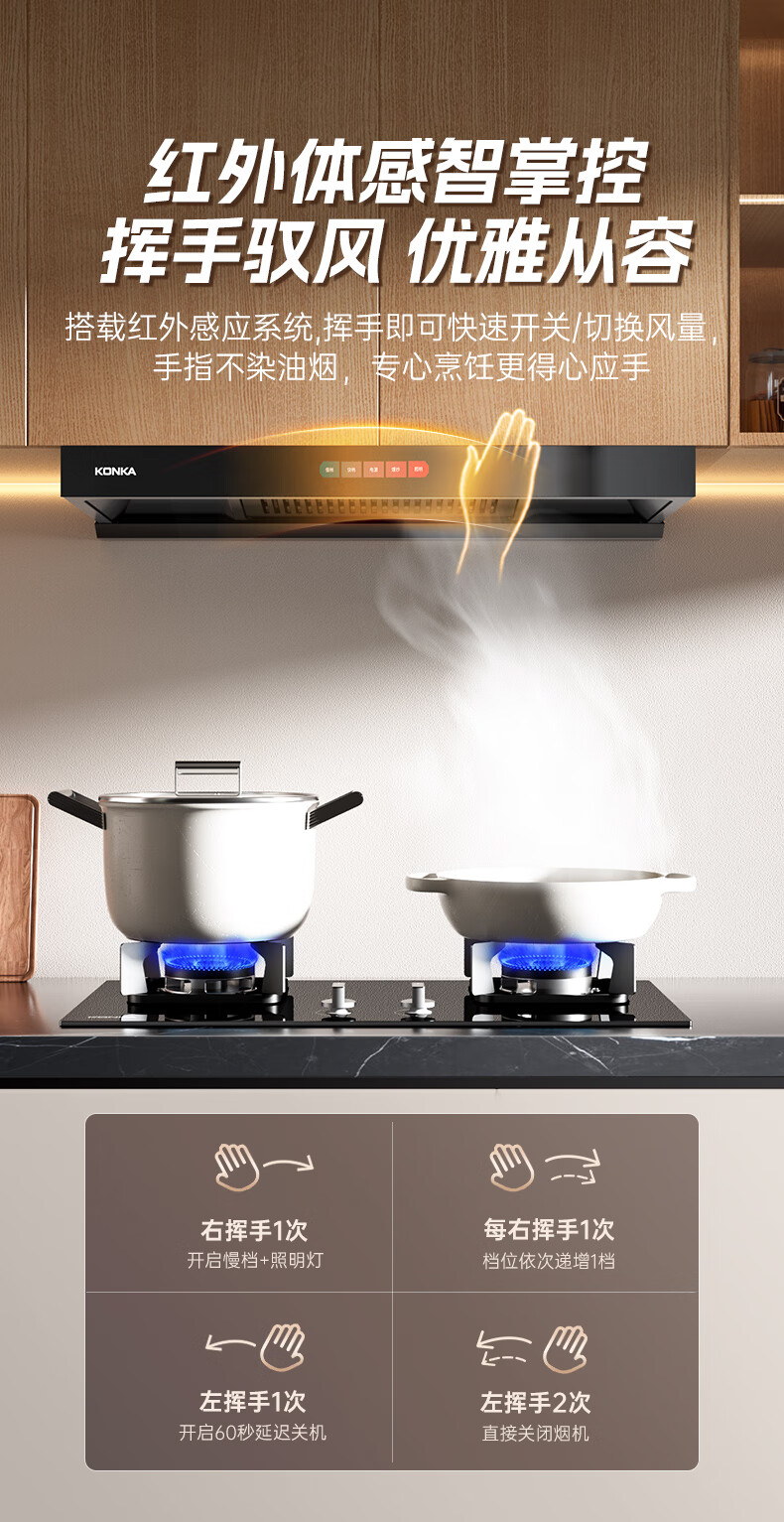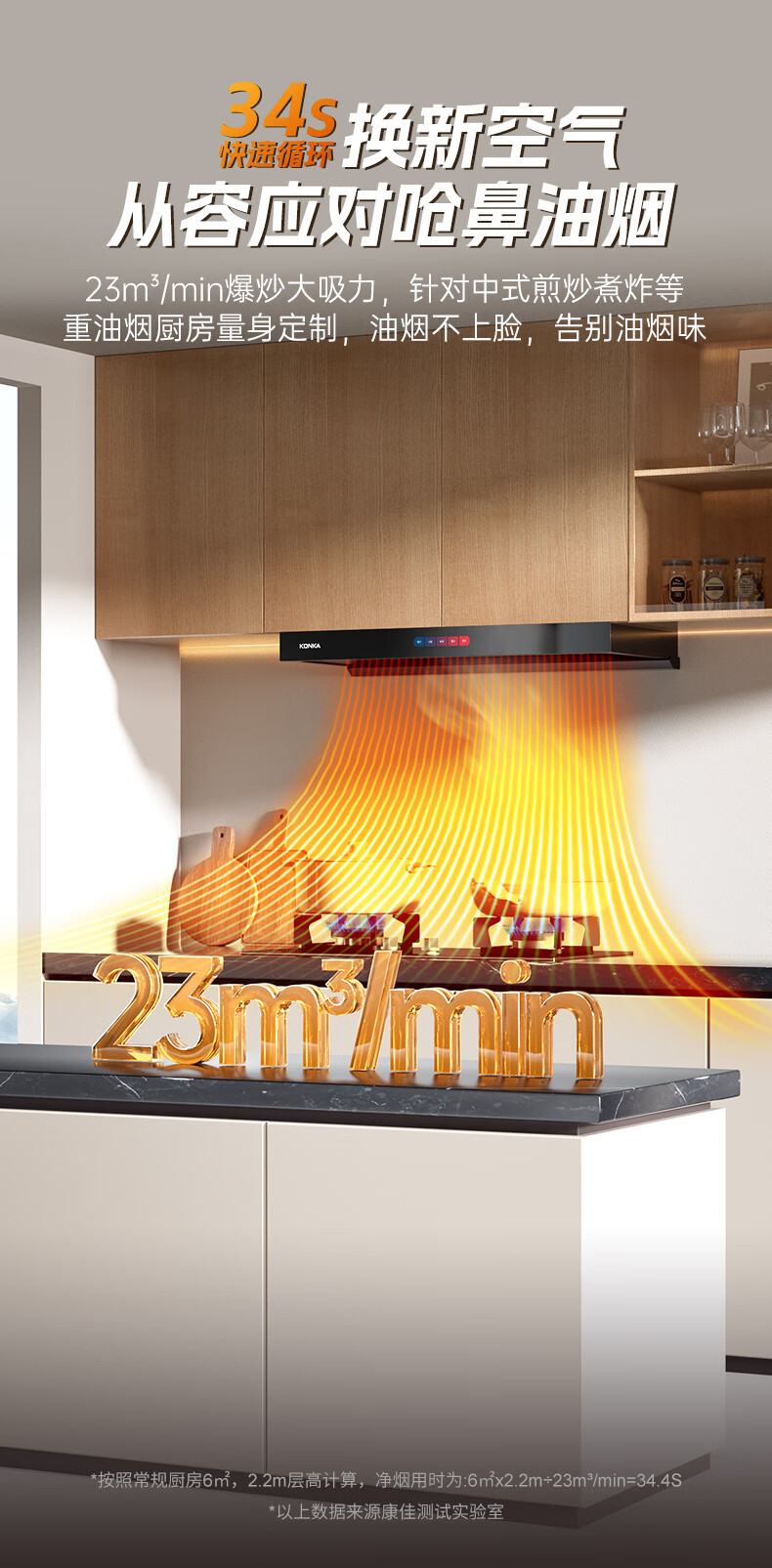 康佳(KONKA)欧式顶吸抽排油烟机家用T型 23m³大吸力 彩屏挥手智控自清洗 CXW-265-KT55