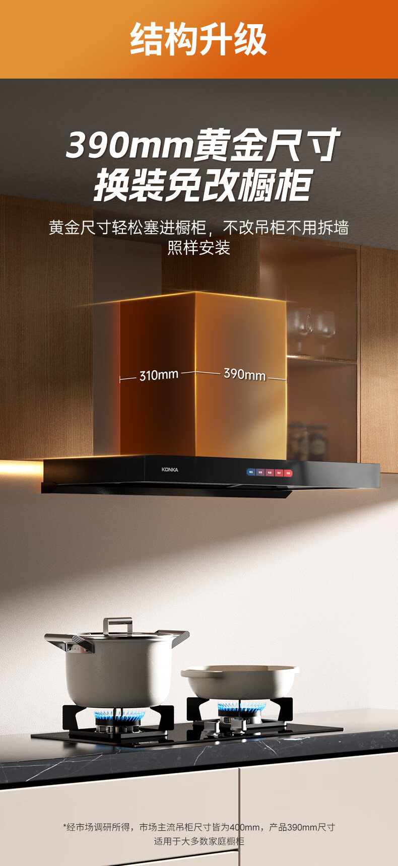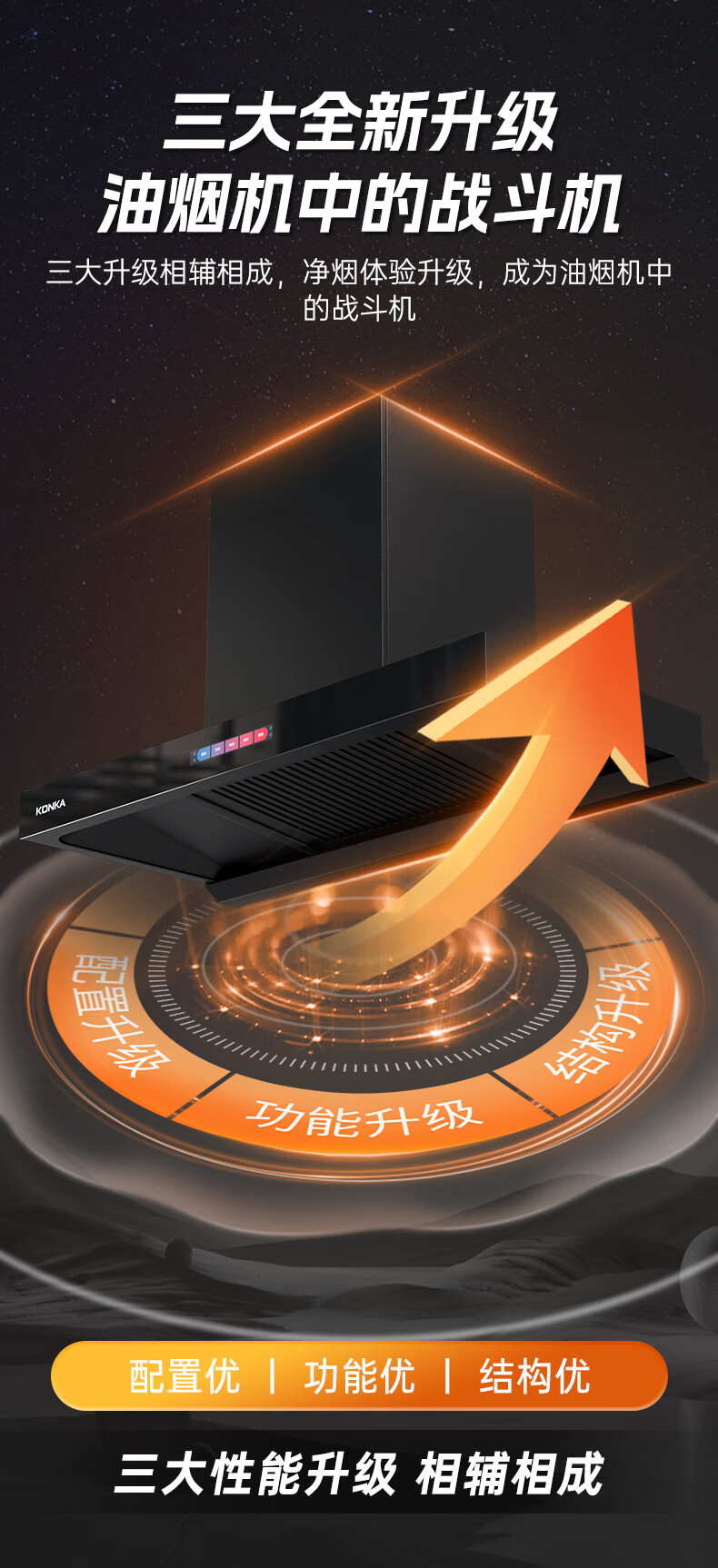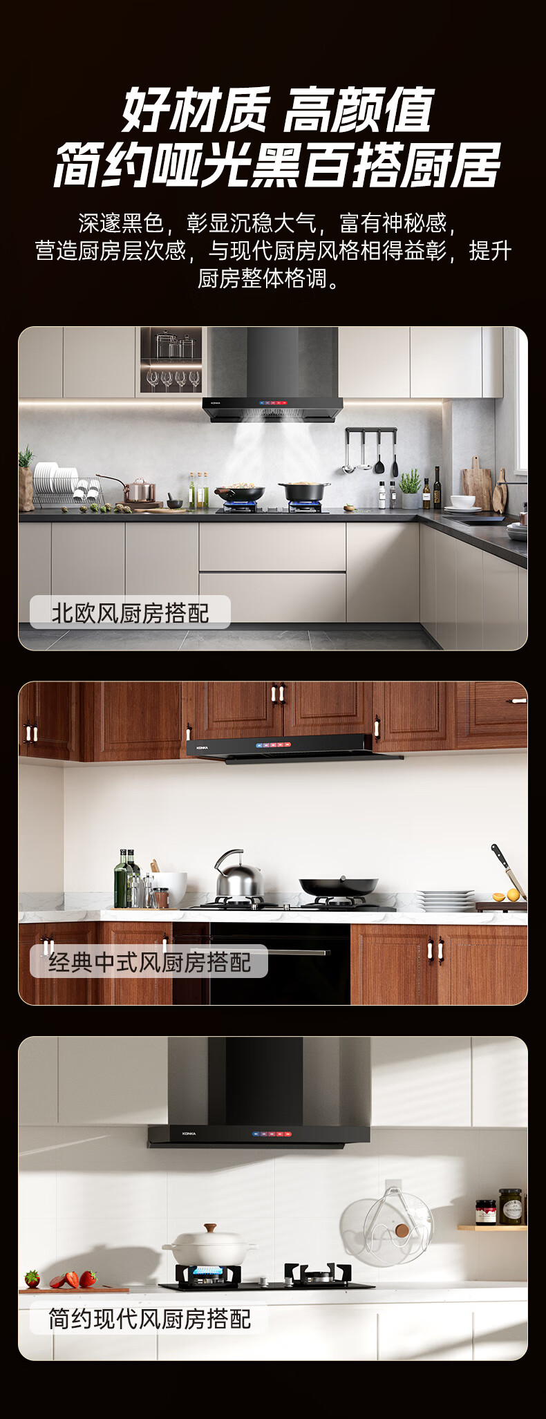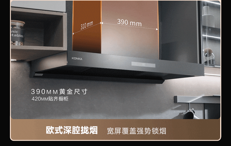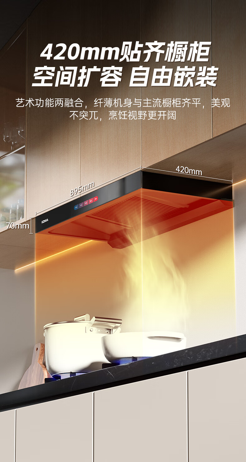 康佳(KONKA)欧式顶吸抽排油烟机家用T型 23m³大吸力 彩屏挥手智控自清洗 CXW-265-KT55