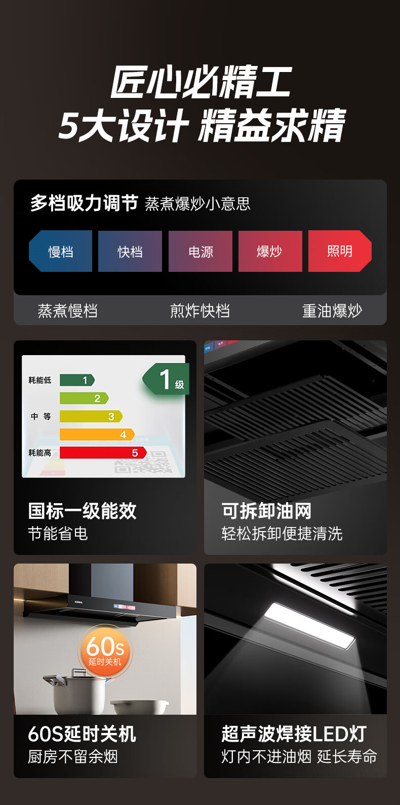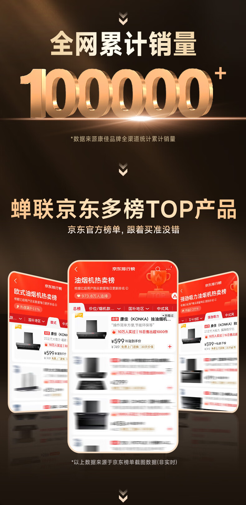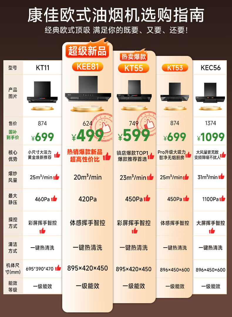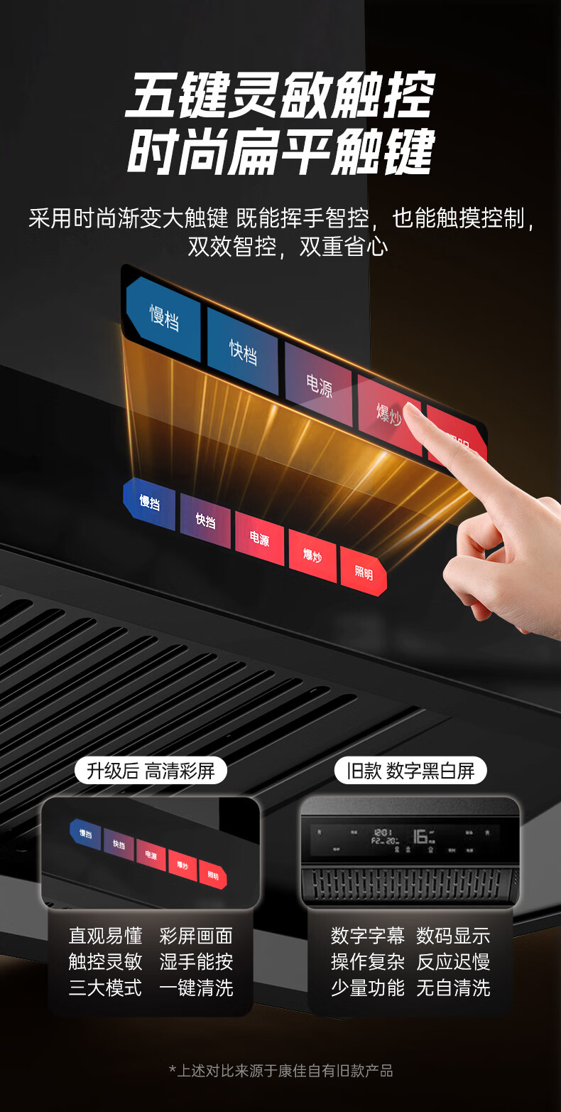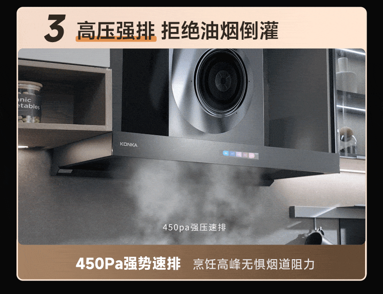 康佳(KONKA)欧式顶吸抽排油烟机家用T型 23m³大吸力 彩屏挥手智控自清洗 CXW-265-KT55