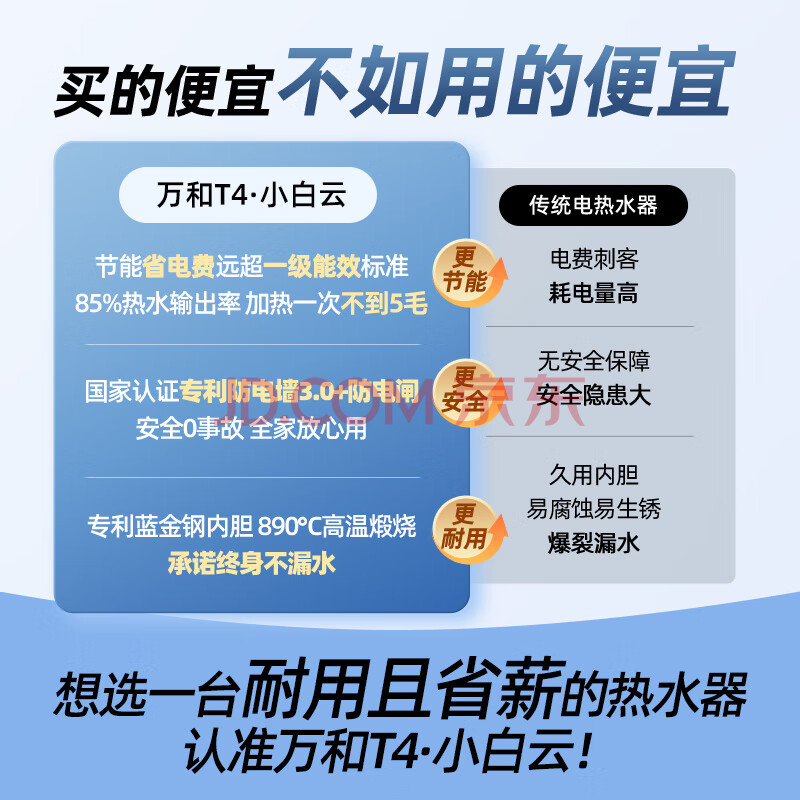 万和电热水器【小白云T4】50升2200W速热节能出租屋小型专利防电墙保护家用储水式
