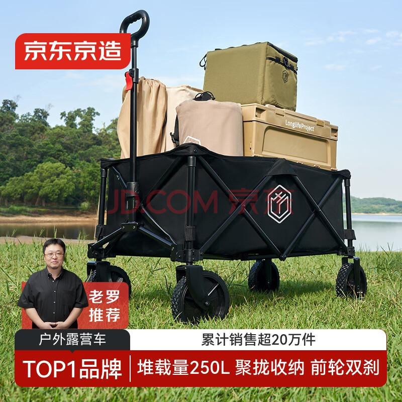 京东京造【400斤承重】聚拢型户外露营车折叠推车摆摊拉车拖车石墨黑