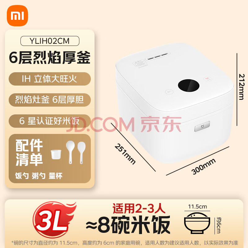 米家小米电饭煲家用2.3个人 多功能电饭锅煮饭锅煮粥 智能压力IH 烈焰铁釜不粘内胆3升 1S