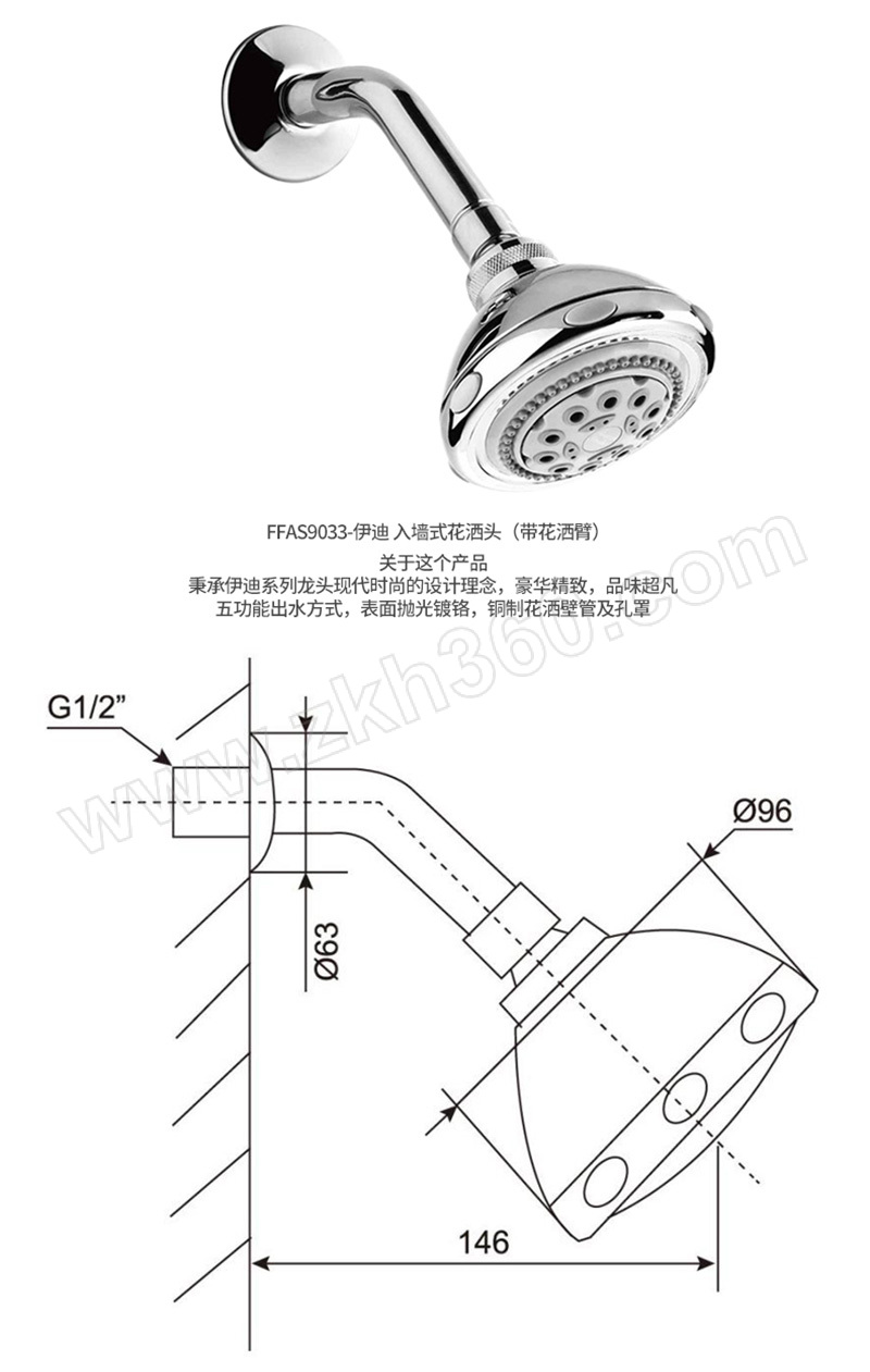 AMERICAN STANDARD/美标 伊迪入墙式花洒头 FFAS9033-000500BC0 1个