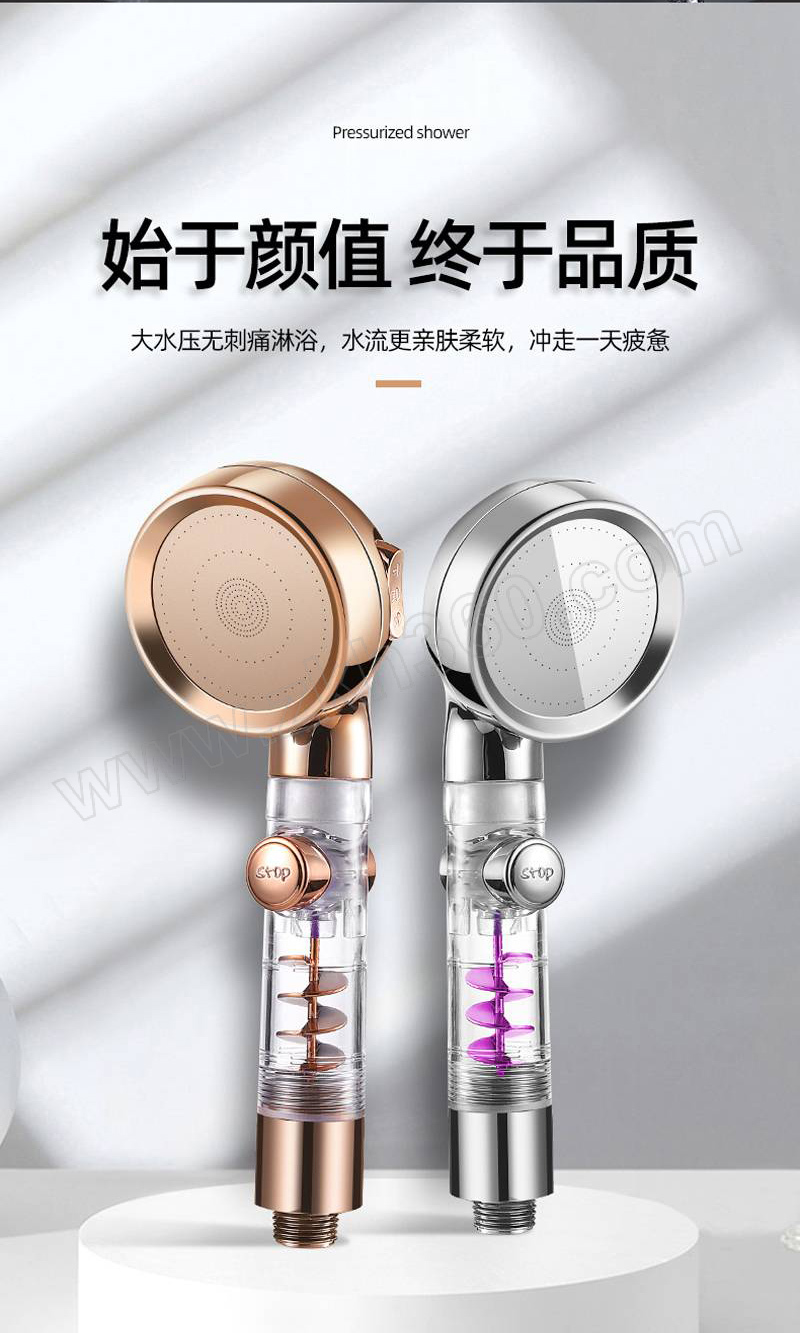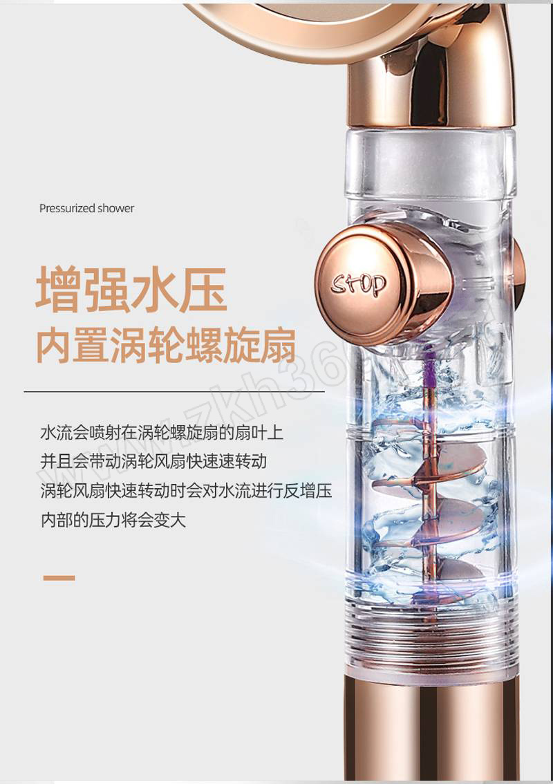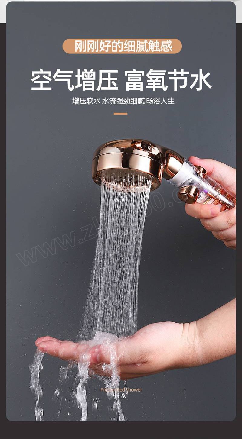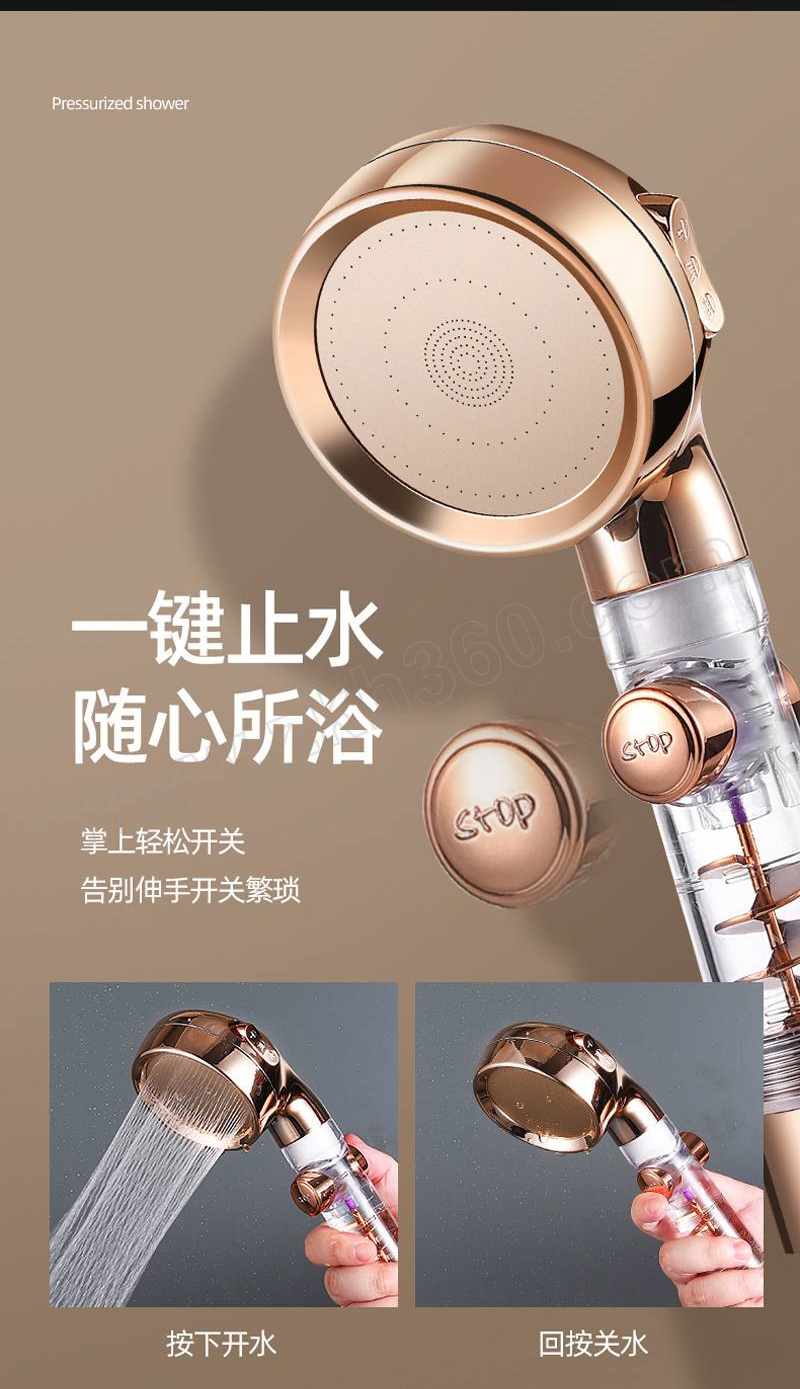 ·小蛮腰流量止水增压花洒,金色三档止水涡轮
