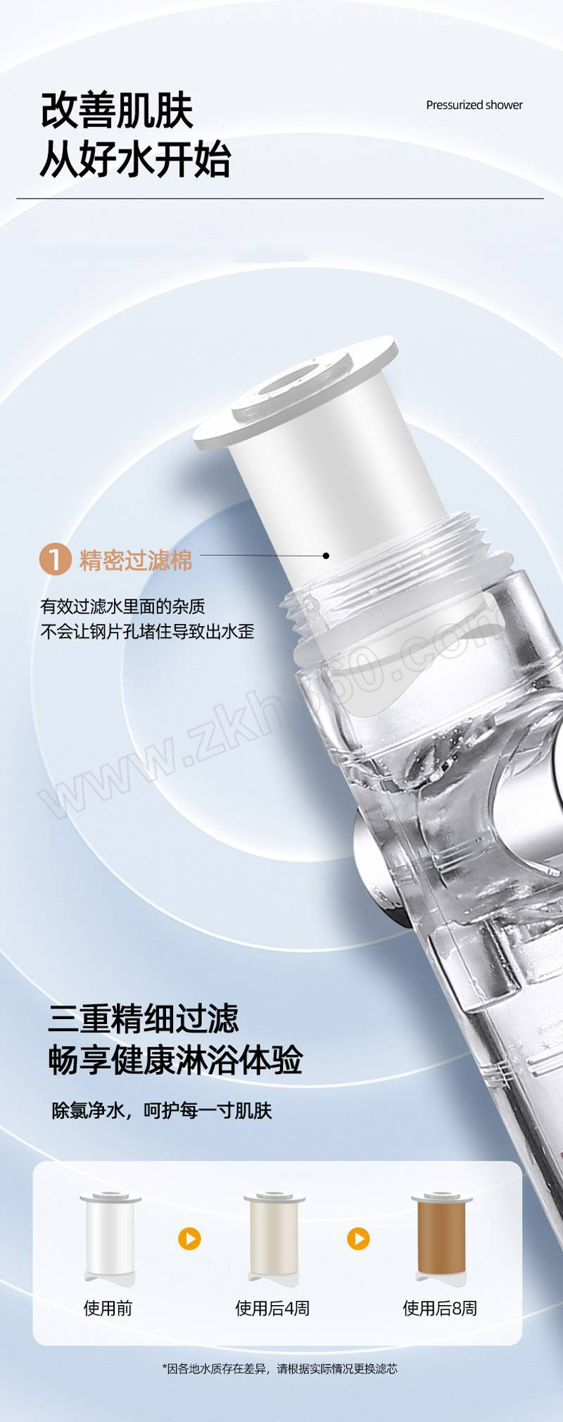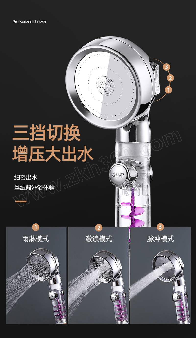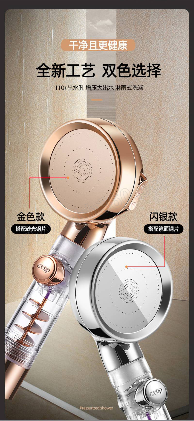 ·小蛮腰流量止水增压花洒,金色三档止水涡轮