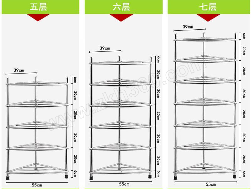 XMS-二层550×390×320mm落地式2层304不锈钢不含安装架子×1 不含装饰物品免打孔款LONGDAI/龙代304不锈钢三角脸盆收纳架--