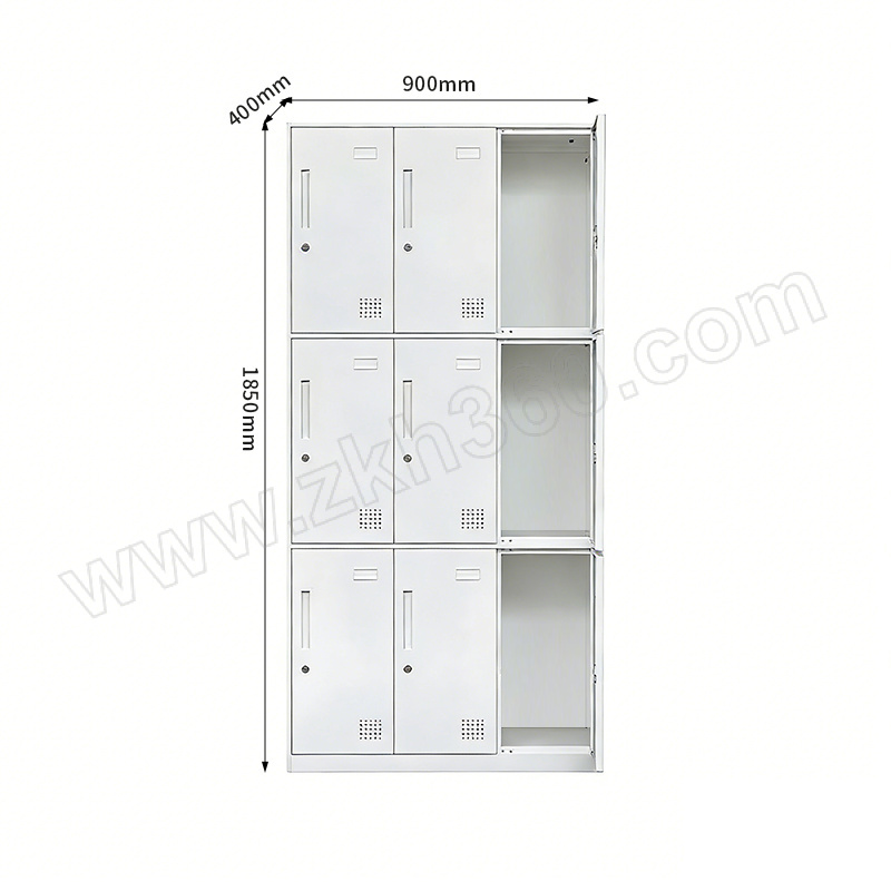 MY-SC-38900×400×1850mm是(有电梯免费;无电梯联系客服咨询)冷轧钢板拆装发货(含安装)9纯白色0.8mm是(如有重物请收货方适当提供协助)不含装饰物品MY-SC-38卸货钥匙ZKH/震坤行窄边纯白色九门更衣柜-尺寸900×400×1850mm