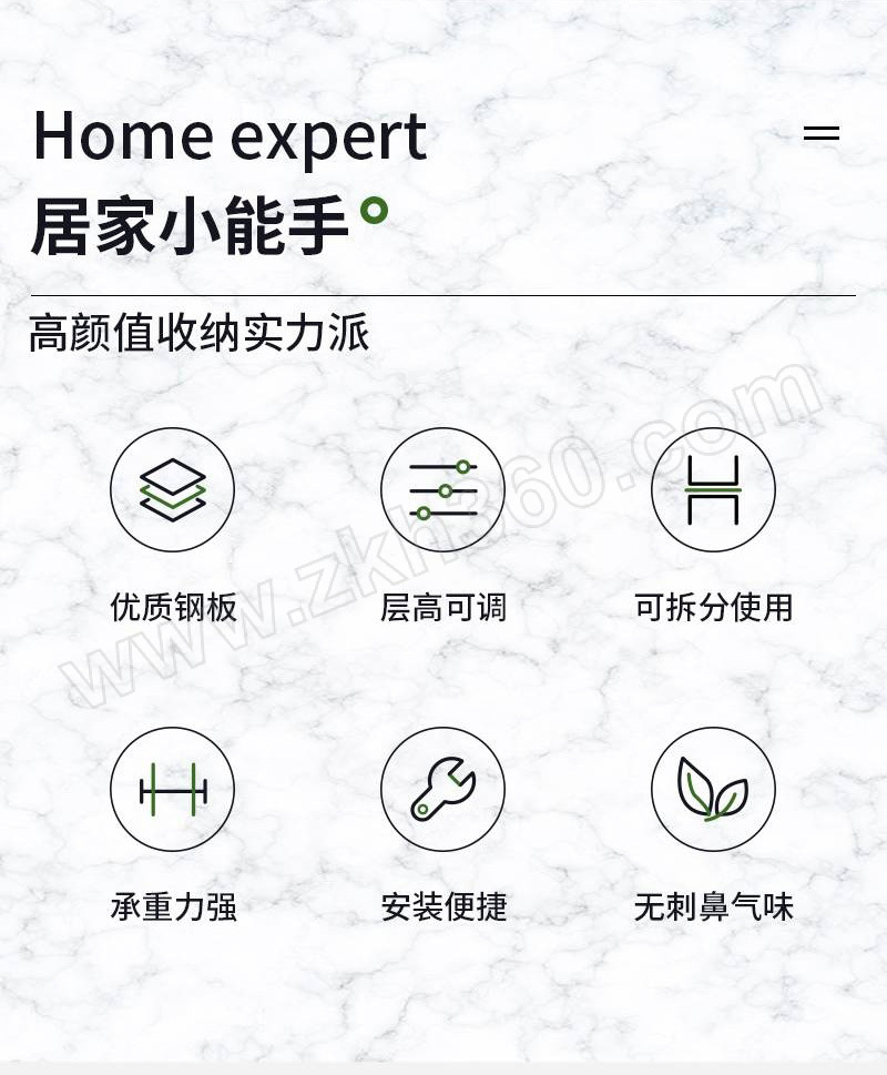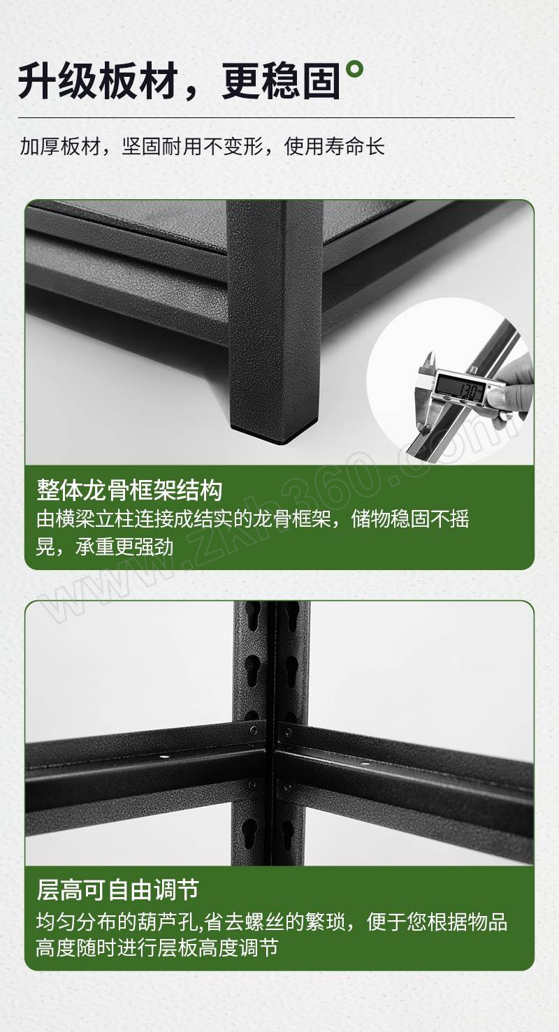 ·优选冷轧钢板,结构稳固耐用,静电喷塑工艺,表面光滑平整,层板可调节和拆卸