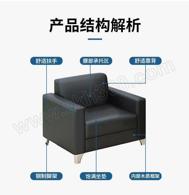 ·西皮面料,耐磨耐脏。高密度海绵,坐感舒适。倾斜式靠背,舒适扶手,木质框架承重力强,金属脚架,稳固美观。