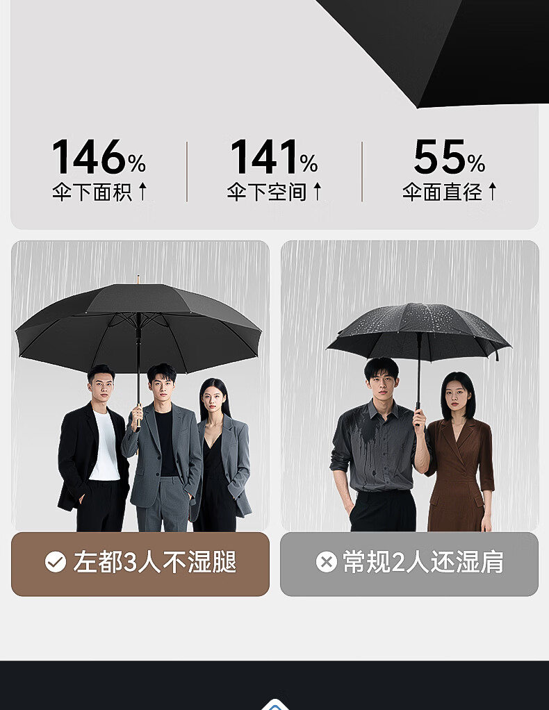 左都(ZUODU)加大雨伞长柄直杆男士超大号三人黑色长把伞抗风暴车载直柄伞