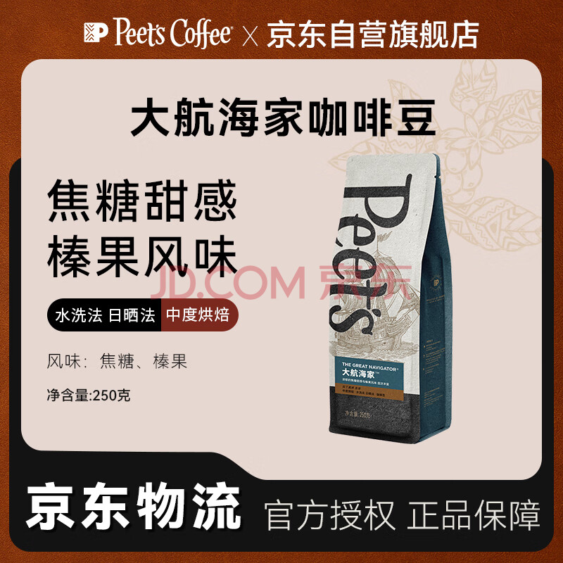 Peet's Coffee皮爷peets 大航海家咖啡豆新鲜烘焙中度烘焙黑咖啡250g【新包装】