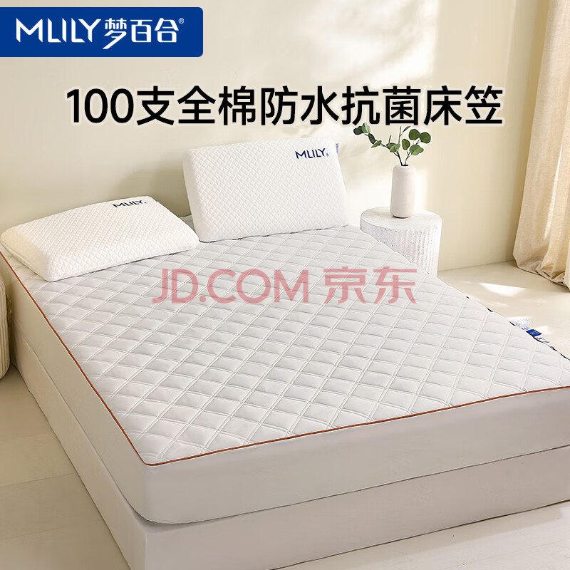梦百合(MLILY)100S床笠全棉夹棉抗菌防水床笠罩新疆长绒棉床垫保护套1.5m珍珠白