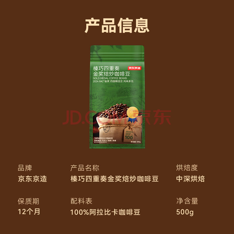 京东京造 意式咖啡豆500g 中深烘焙阿拉比卡咖啡豆浓郁低酸美式手冲金奖豆