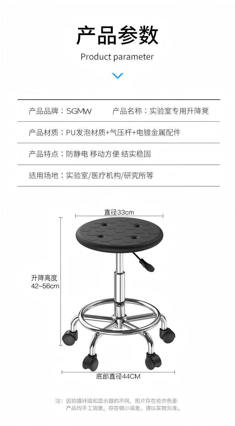 SGMW防静电椅子工厂车间流水线防静电升降圆凳子实验室发泡医院工作椅
