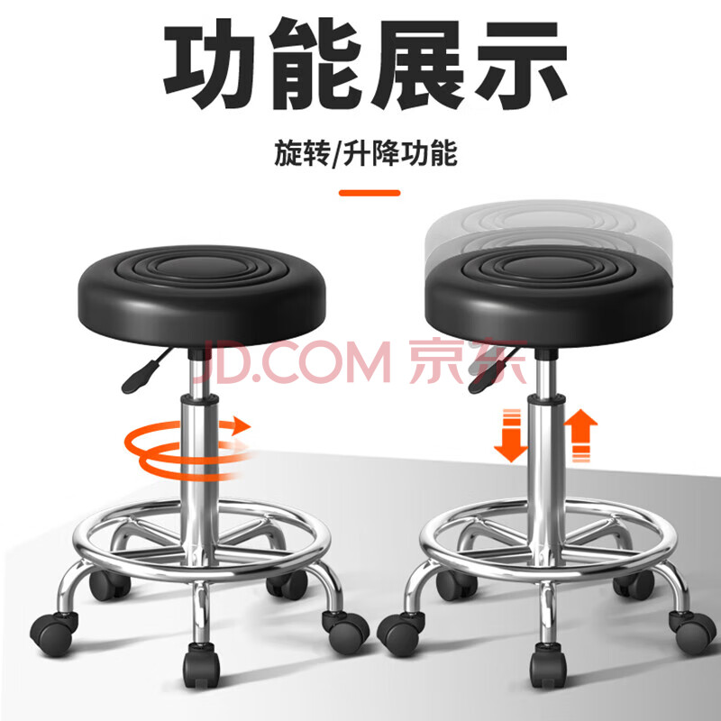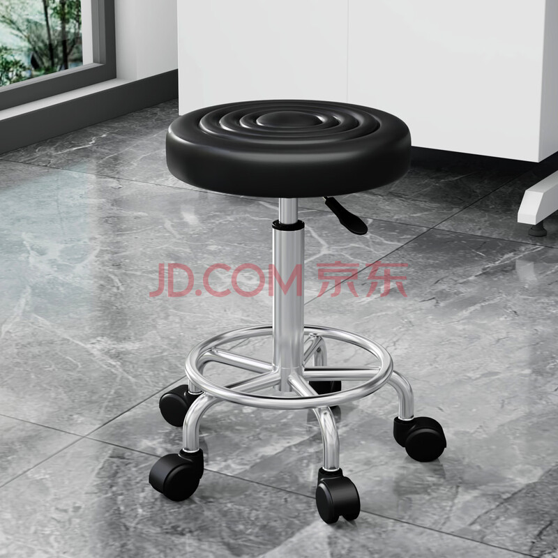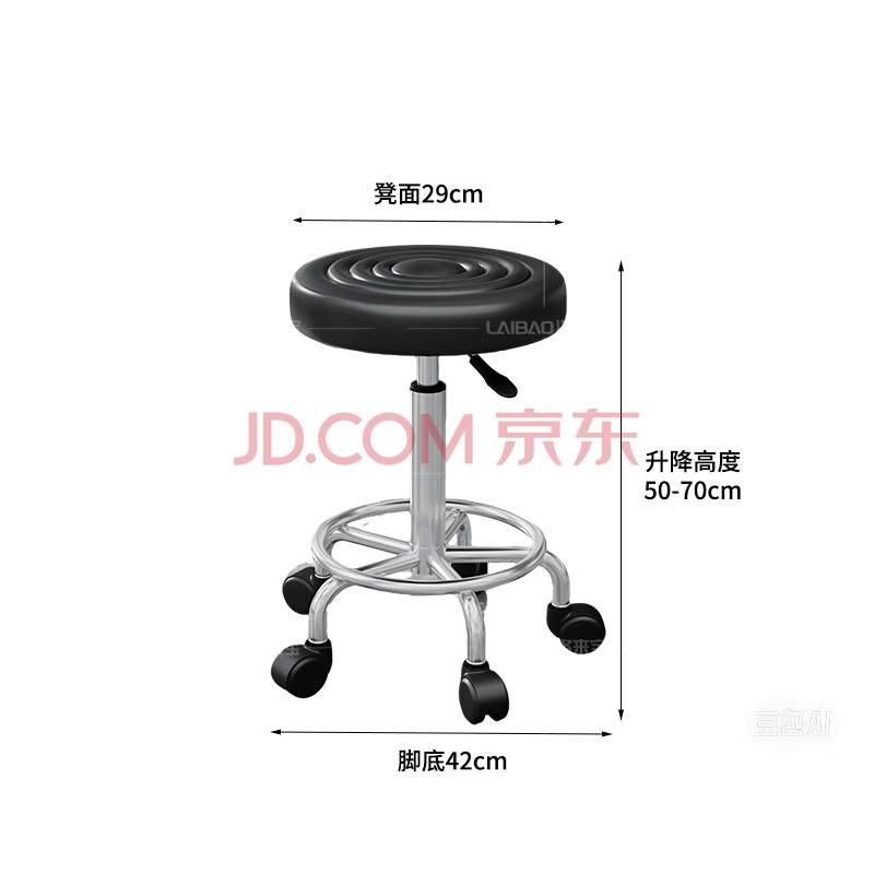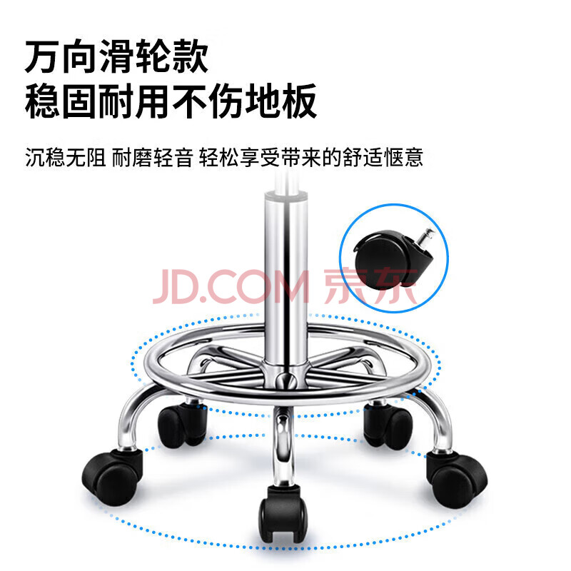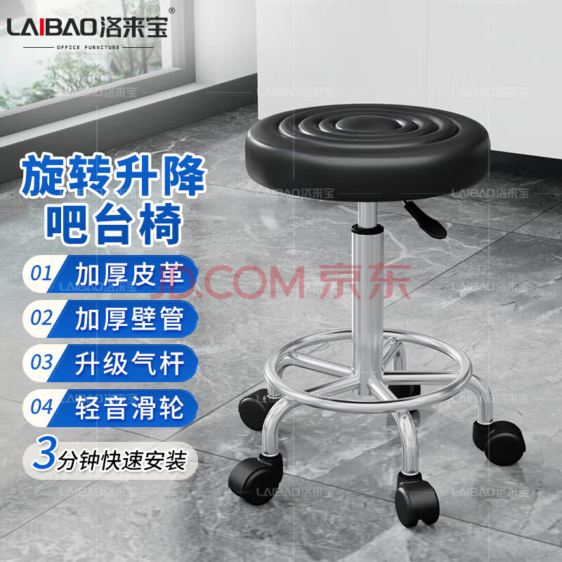 洛来宝实验室圆凳子升降凳车间工作凳皮革吧台椅高脚凳电镀滑轮50-70cm