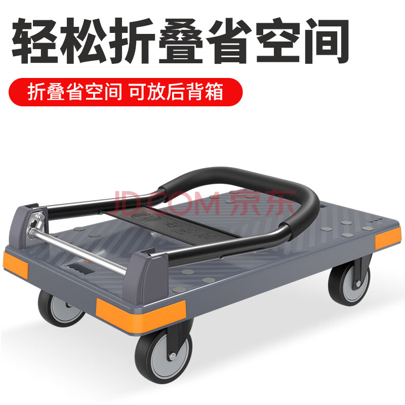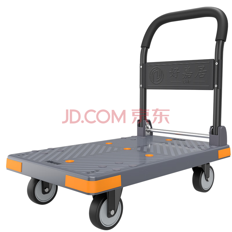好嘉居 折叠平板手拉车 【四角防撞】载重1000斤90*60cm5寸轻音轮-商务灰 手推拉货搬运小推车装修工厂