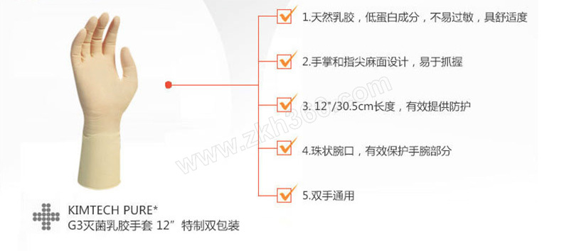 6乳白色20副/包 10包/箱6一次性KIMBERLY-CLARK/金佰利KIMTECH PURE*G3无菌乳胶手套 12"5684420副/包 10包/箱6.5码