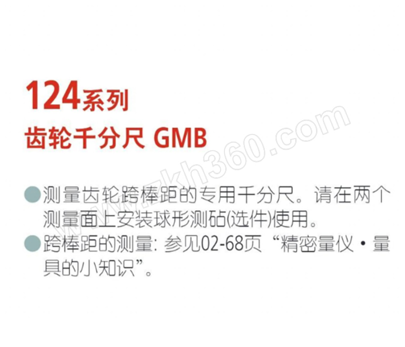·达到 IP65 防水/防尘防护标准 (324系列) ·可使用钢 (硬质合金) 球型测量面测量齿轮齿顶圆直径 ·选择不同的可更换球型测砧 — 心轴测针型,可测量不同模数的齿轮 (0。5 - 5。25) ·棘轮锁定装置可保持恒定测力