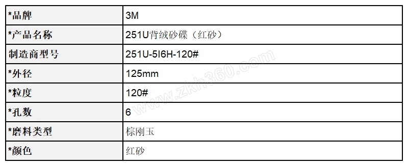 3M 251U背绒砂碟(红砂) 251U-5I6H-120# 5" 6孔 120# 实际为盒 1包 销售单位:包